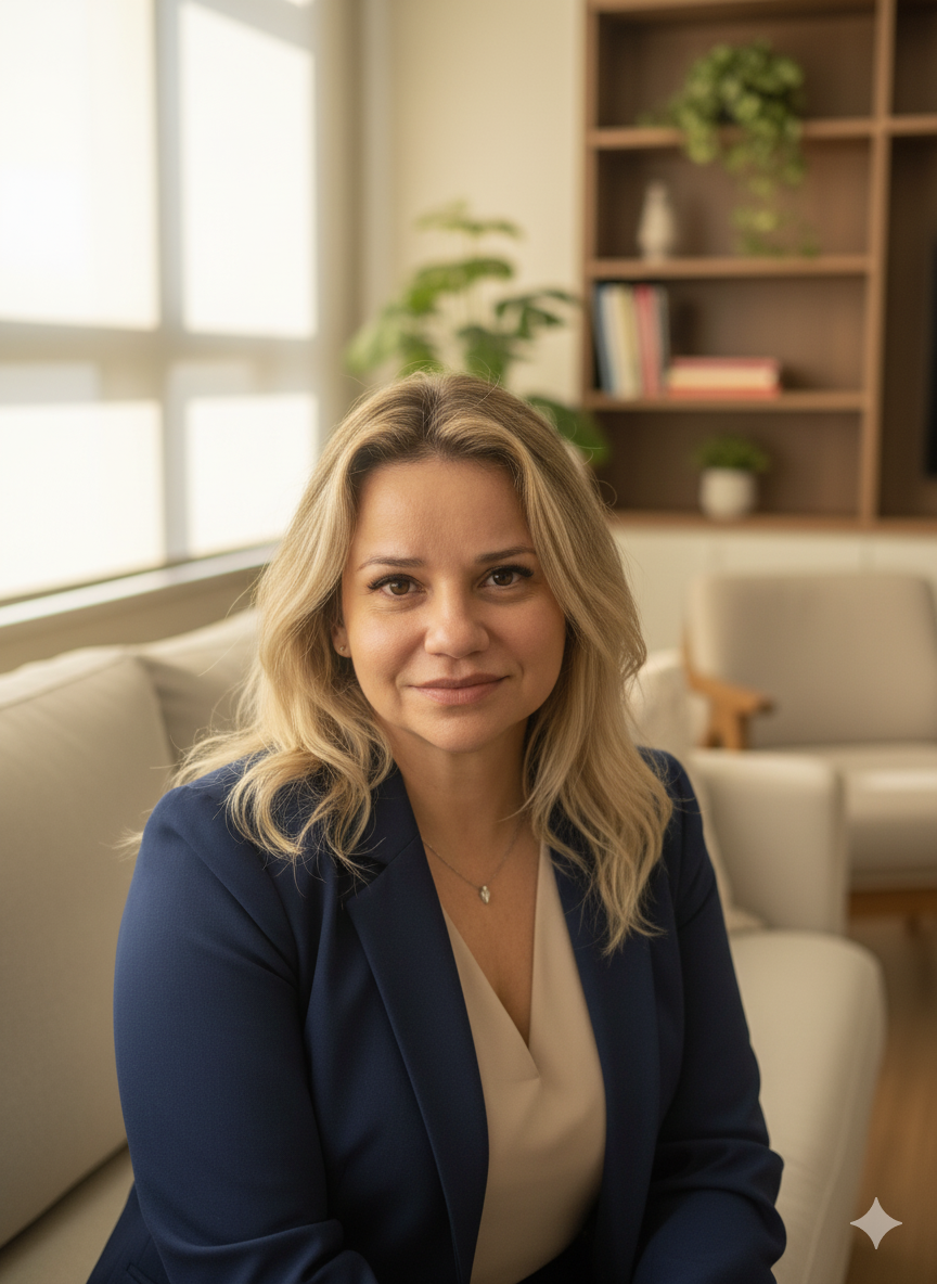 Psicóloga clínica com vasta experiência em saúde mental, atendendo adolescentes, adultos e casais com acolhimento e confiança.